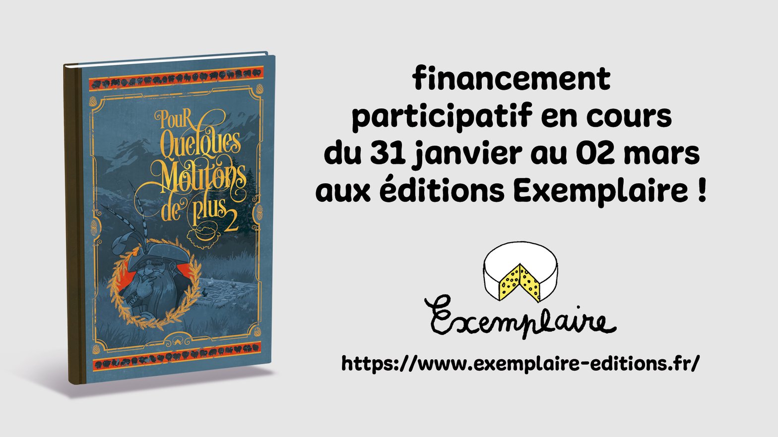 Comme je disais, ça a été lancé hier à midi. Démarrage un peu plus lent que pour le tome 1 mais je ne vais pas m’en plaindre, les 100% ont été atteints en moins de 24h. Cependant, on va pas se mentir, ce n’est qu’un début ! Vous pouvez toujours précommander l’album ici (et voir ma chouette vidéo au passage).le tome 2 avec le texte “financement participatif en cours du 31 janvier au 02 mars aux éditions Exemplaire !